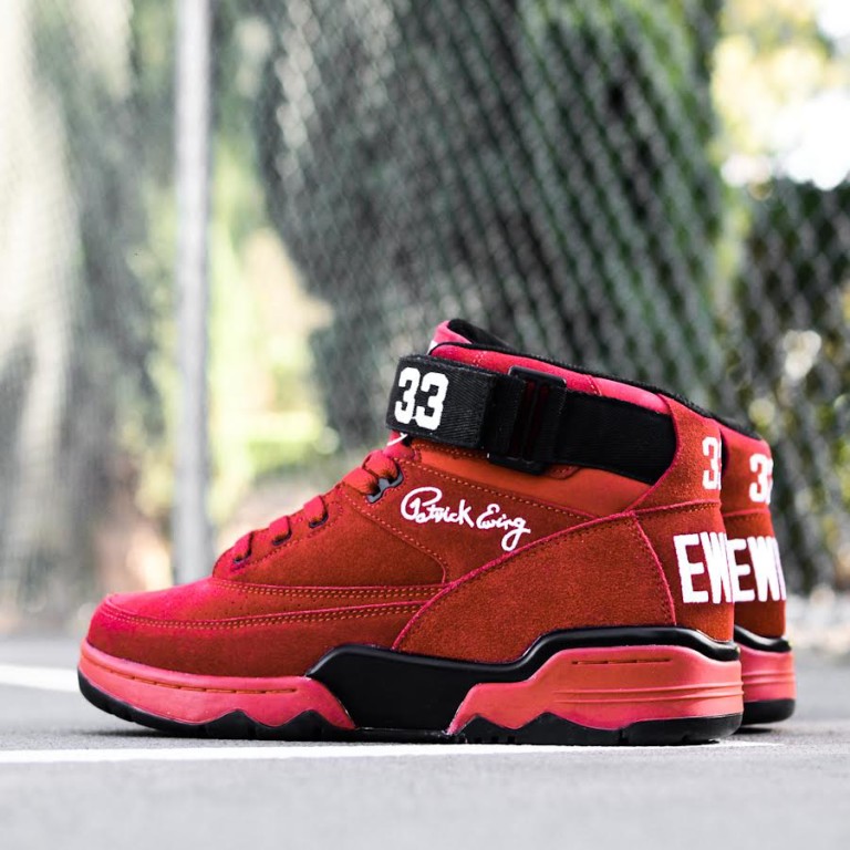 Its not easy to re-create the wheel but thats what Ewing Athletics has done with the 33 Mid. A mid cut version of the 33 Hi this is the first time ever it has released in mid cut. Complete with a revised strap a lower profile and in red suede, the Ewing 33 Mid is available now at Ewingathletics.com