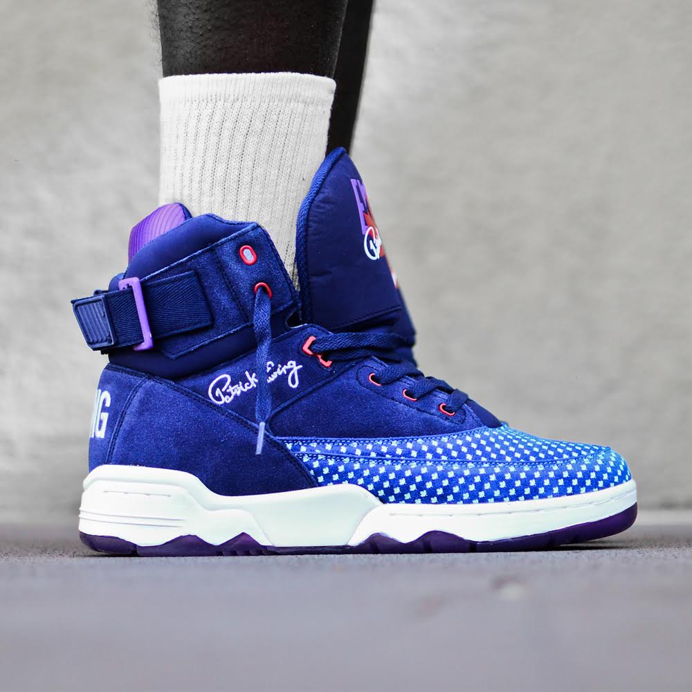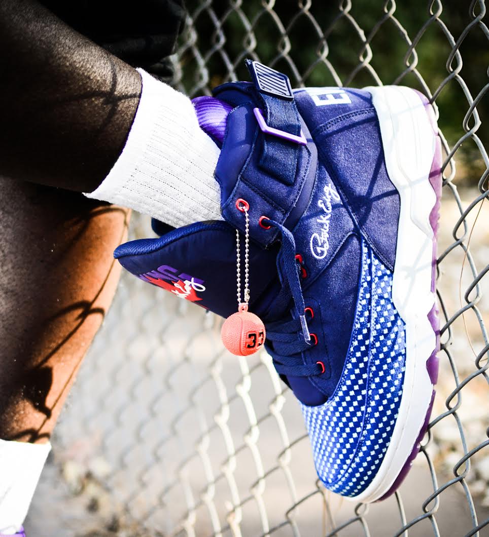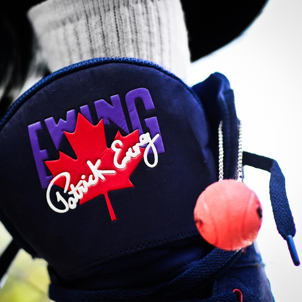The 33 HI returns in it’s All-Star iteration for 2016 celebrating the site of this years game, Toronto. Featuring colors from all 3 Toronto professional teams (Raptors, Blue Jays, Maple Leafs) as well as the Maple Leaf from the Canadian Flag on the tongue and glow in the dark leaves on the toe. The shoe features a premium suede upper and a translucent purple sole as well. Retailers will carry sizes 5-13 and larger sizes will be available on Ewingathletics.com on February 12, 2016 at a retail price of 120.00 USD.