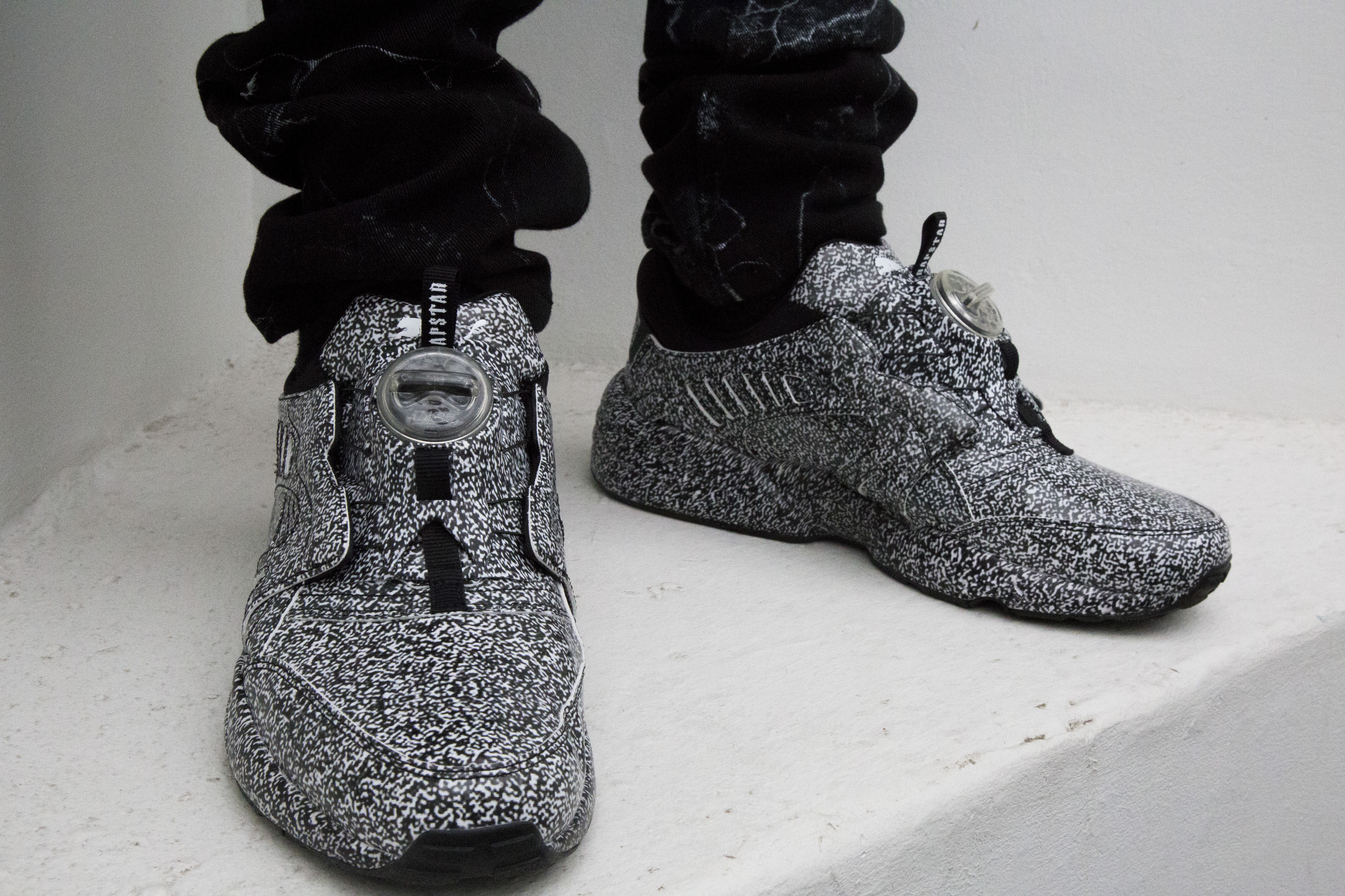 For the teaser drop, PUMA and Trapstar have reworked the classic PUMA Disc. The Disc x Trapstar White Noise features the Trapstar signature ‘white noise’ graphic design all over the disc providing for a shoe that will no doubt stand out on your city streets.