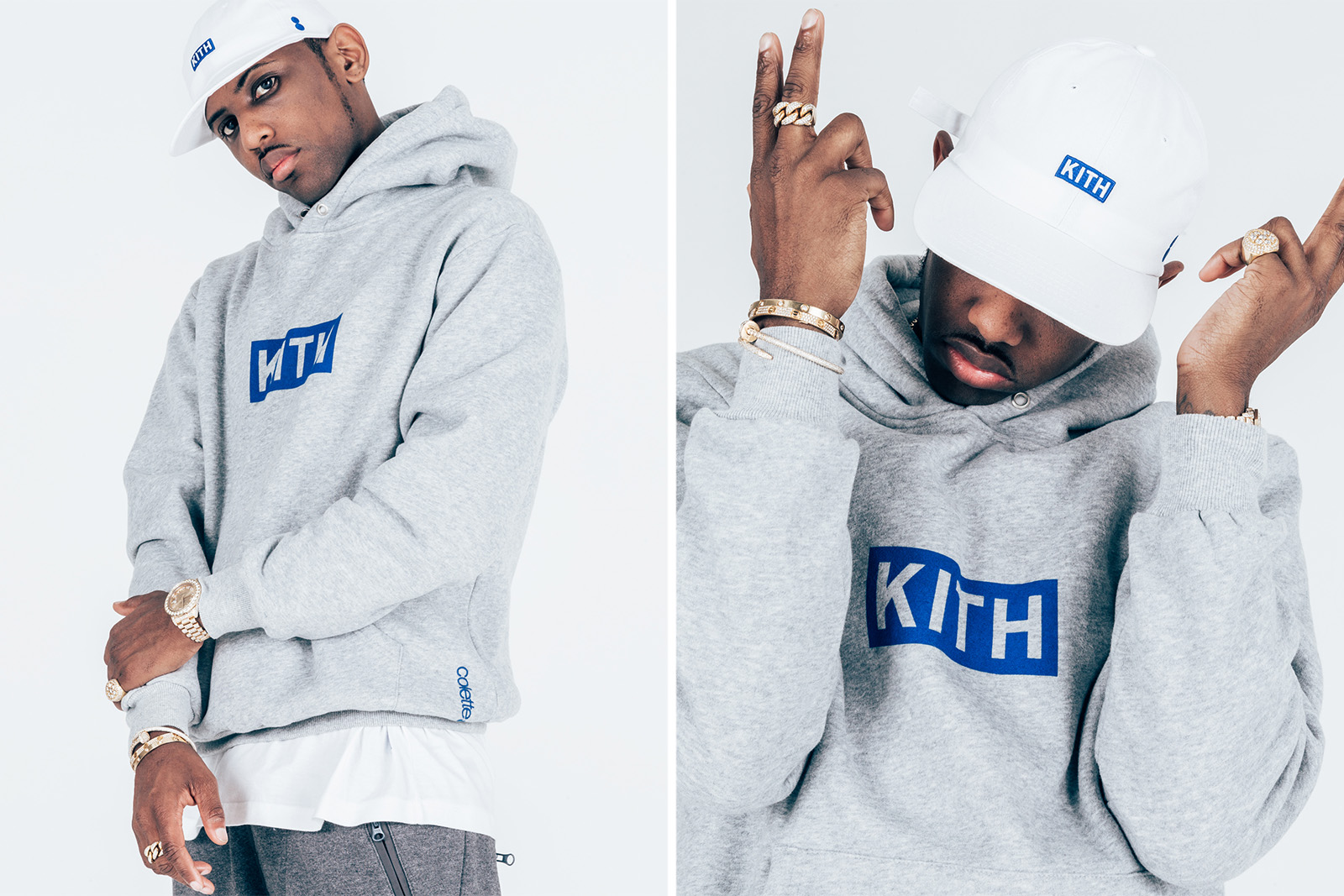The apparel includes updated renditions of staple Kith designs, such as the all- new Madison II Jacket, which features a colette-blue and white asymmetrical pattern, convertible hood-collar, and front two-way zipper. The Williams Hoody, an essential pullover crafted from custom-milled 400 GSM 100% cotton fleece, is offered in grey and colette-blue. Other tops include a colette-blue Kith classic logo tee, and an undershirt 3-pack comprised of white, grey, and colette-blue. Lastly, the duo offers a wide range of accessories, including a Mini Logo Hat, boxer briefs, and collaborative Stance Fusion Performance socks.