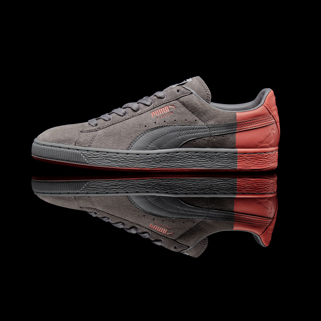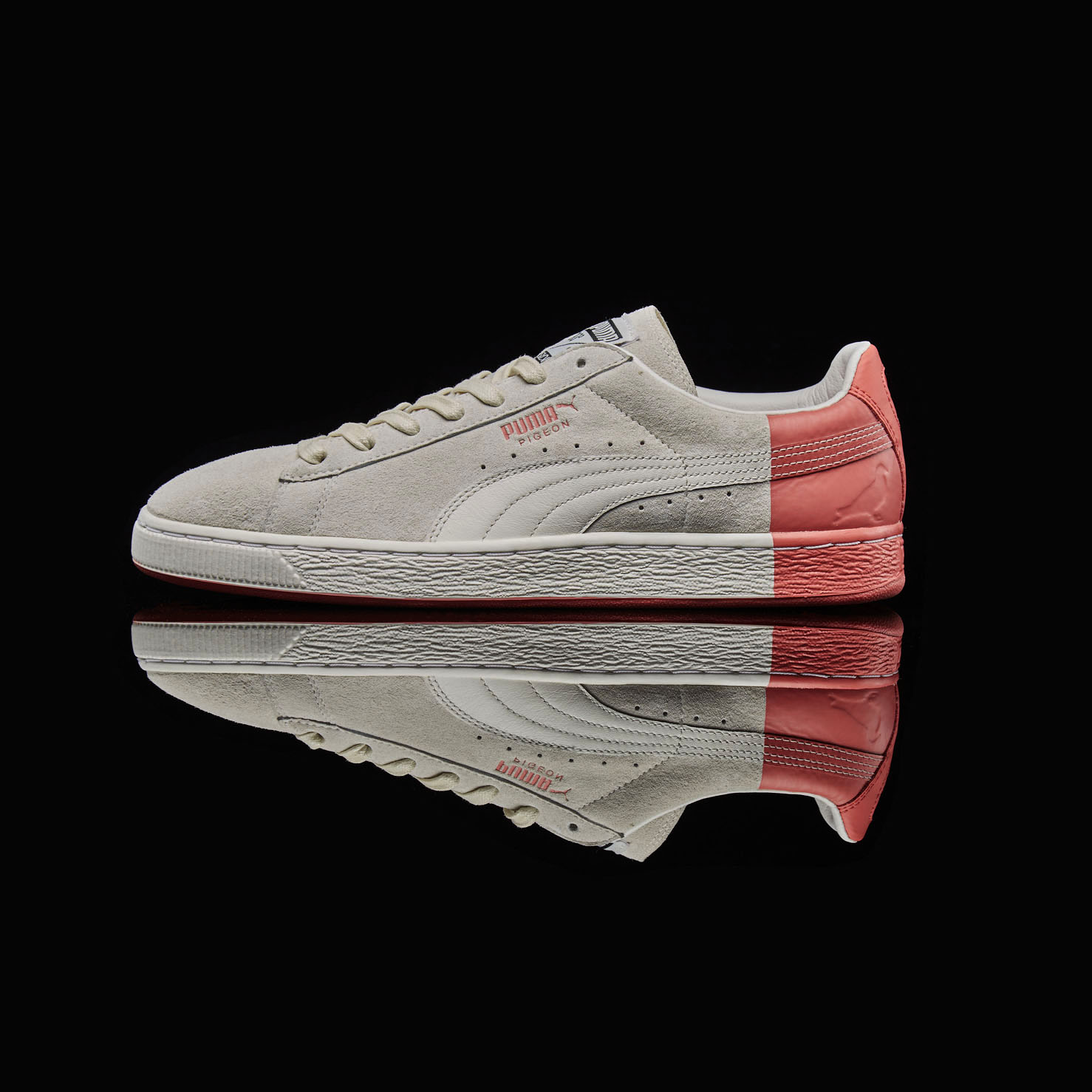 Says Staple, “That’s why I am really excited about this 4-piece collection with PUMA. We’ve abstracted the trademark Pigeon colors over three different styles of the legendary PUMA Suede. The heels are all ‘dipped’ in Pigeon Pink while the other predominant color is region-specific. ‘Star White’ for The Americas, ‘Frost Grey’ for Europe & The Middle East, and “Pure Black” for Asia Pacific. To cap it all off, we’ve designed a classic Pigeon colored Blaze of Glory that will be available globally at PUMA’s top accounts. Go ahead. Just try and get all of them. Let the hunt begin!”