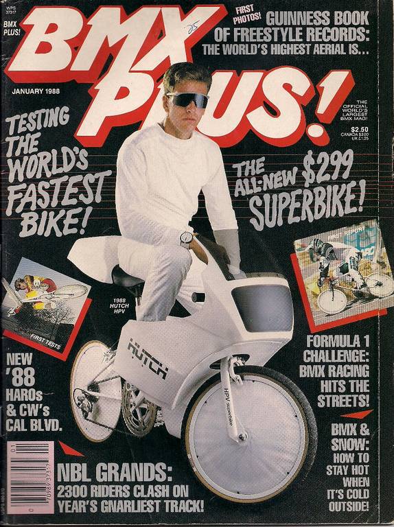 Ummmmmmmmmmmm maybe not, but one things for sure its HOT! Now while HPV has come to mean something a little different 28 years later it still doesn’t take away from the allure of this 88 gem. Thirty pounds of Hutch goodness this rare late 80’s masterpieceĀ is the thing of fairy tails, excessive 80’s at its finest. At first glance it looks like some sort of unreleased prototype but in reality its a race bike that was 100% available for purchase to the public. BMX Plus magazine clocked this thing going 34 mph back in 1988 which they described as 4mph than they’d ever seen someone go on a BMX. Reviews have been mixed from unrideable to once you ride it you’ll want to own it. One things for sure, if you have one for sale feel free to contact me direct! Take a trip back below!