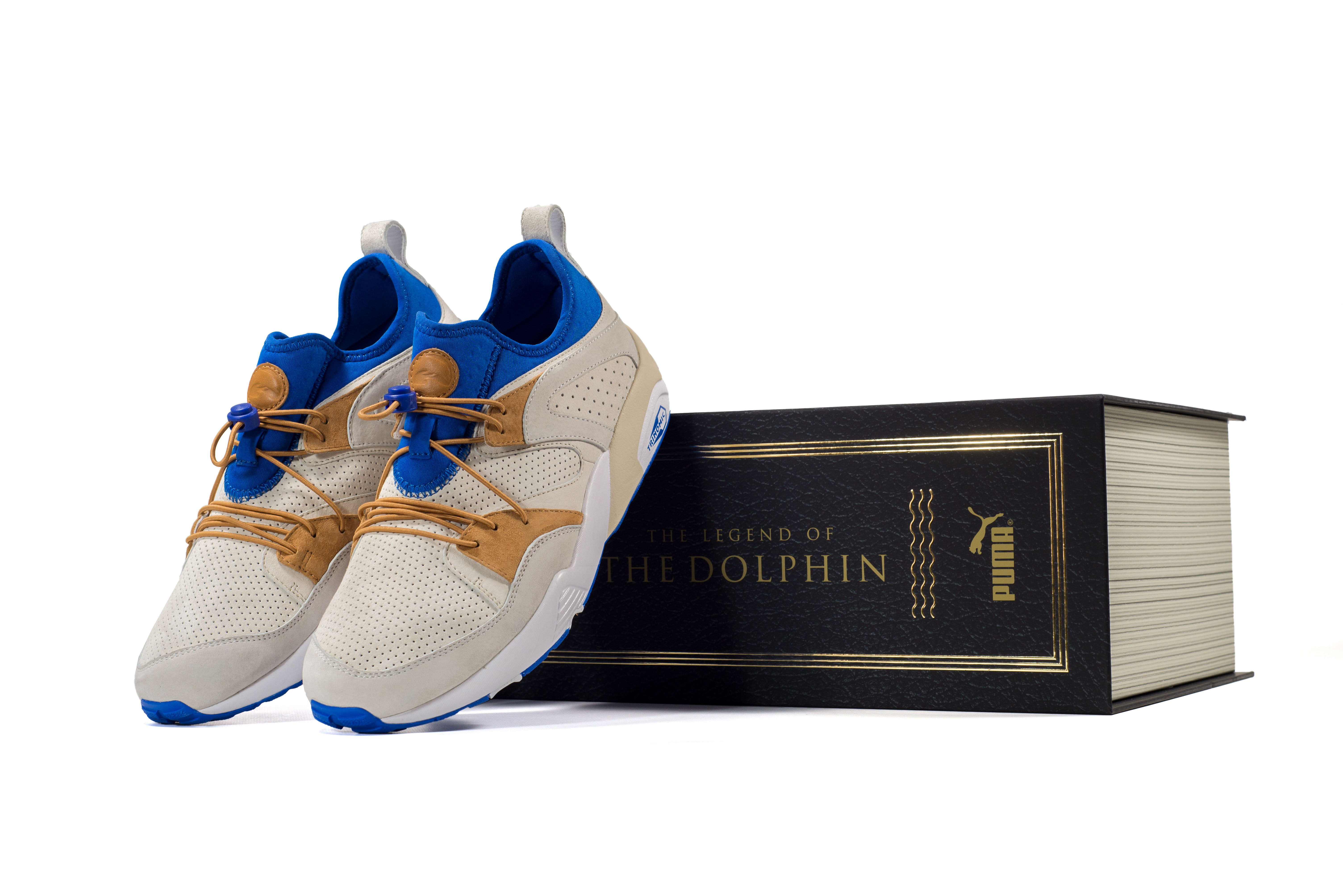 For the new Blaze of Glory iteration, PUMA and Sneakers76 chose story “The Legend of the Dolphin” and the symbol as inspiration. Ancient legends tell that Taranto was founded by the god Taras, son of Poseidon. During a sea-voyage, Taras was shipwrecked off the coast of Taranto and was rescued by a dolphin. To thank Poseidon for coming to his aid through that dolphin, Taras founded the city of Taranto. Today, the sea of Taranto is populated by dolphins. When you approach the city from the sea, you can see that the dolphins accompany the sailing ships towards the entrance of the Gulf of Taranto.