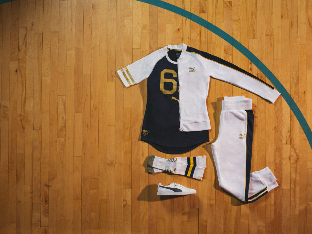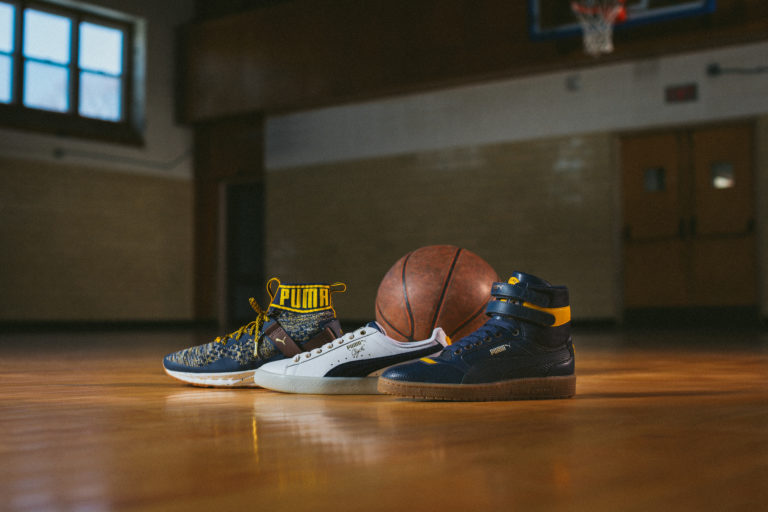 Varsity favorites like the Clyde T7 Jacket and Pant, feature a slim cut sweat in the school’s blue and gold. Assorted tees in men’s and women’s fits highlight the year Clyde graduated and ask its wearer ‘What Will Your Legacy Look Like?” As far as the footwear goes, the newly introduced IGNITE evoKNIT shows off with a blue and gold premium knitted upper and ankle cuff. The basketball inspired Sky II Hi has a clean blue leather upper and dual lacing, so the wearer can decide how to style. Finally, his and hers Clyde’s finish the collection, with a preppy white leather upper and blue leather formstripe that is sure to keep you broke keeping up with all these dope Clyde releases. Footwear and apparel are accentuated with color coordinating accessories like socks, a duffle bag, winter hat and a flat brimmed ball style cap and all pieces are inspired by the David T. Howard School’s spirit, its legacy and its role in our nation’s history.