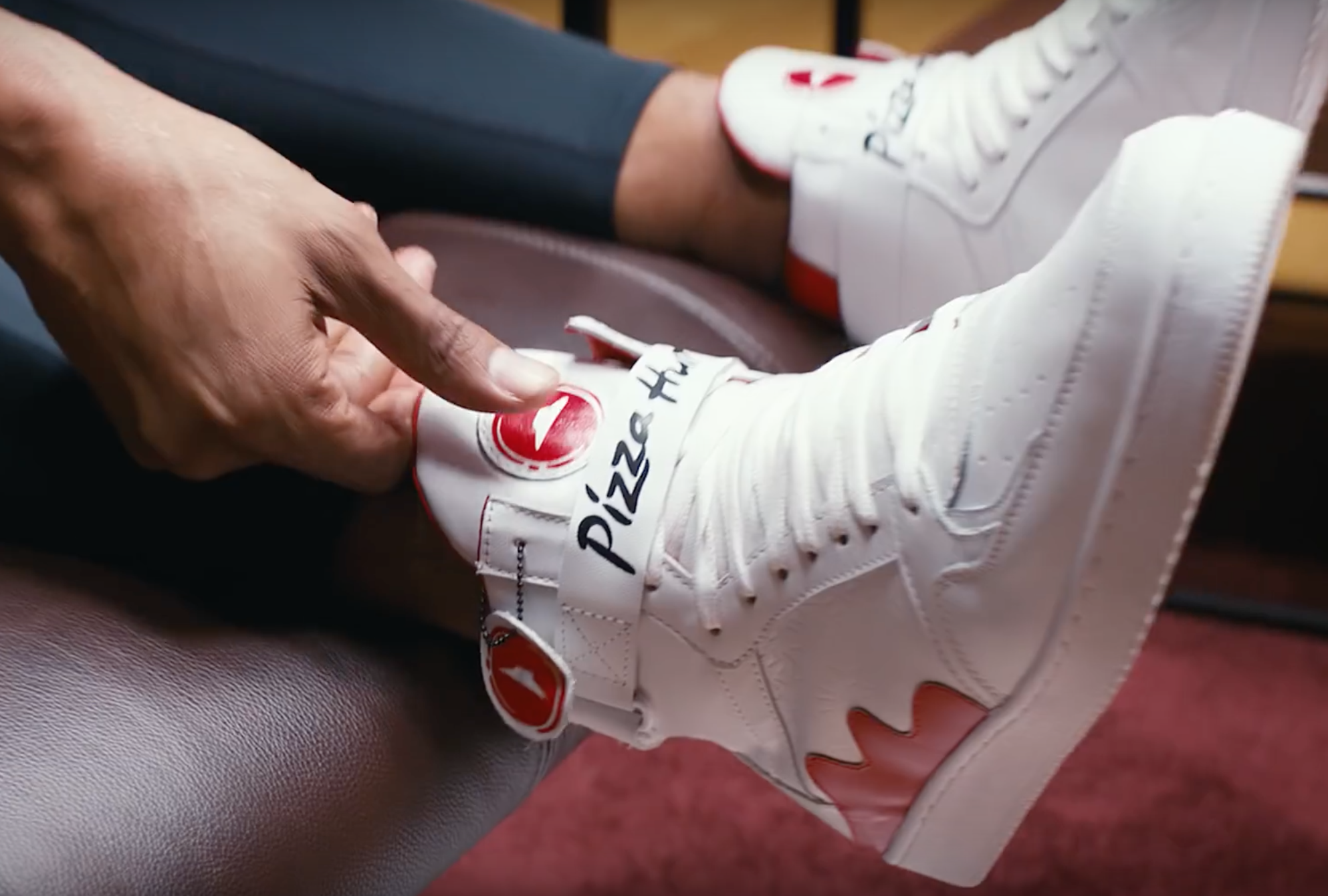 Each pair of shoes reportedly contains a Blutooth device that syncs up with the Pizza Hut mobile app which allows users to order a pre-selected pizza (or the default Supreme Pizza) just by pressing on the shoe’s tongue (Watch Out Reebok). The sneakers are also fitted with geo-location technology that allows deliverymen to find customers wherever they are.