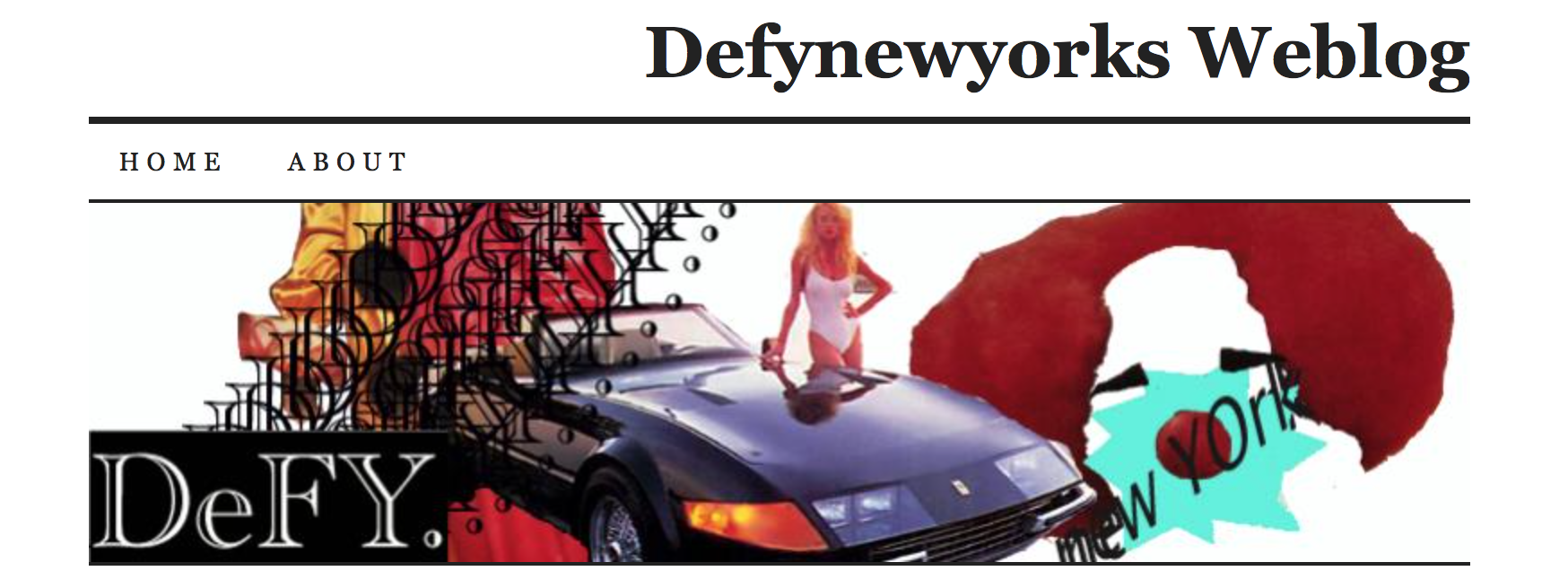 In the earliest days of DeFY. New York you would be greeted by this. A of sort creepy scrap bookish type of banner (if you could call it that) which included Homey The Clown & a Ferrari Daytona from Miami Vice. It was weird, it was definitely throwback and um, I’ll let you fill in the blank. Eventually, this banner would change into the Train banner.