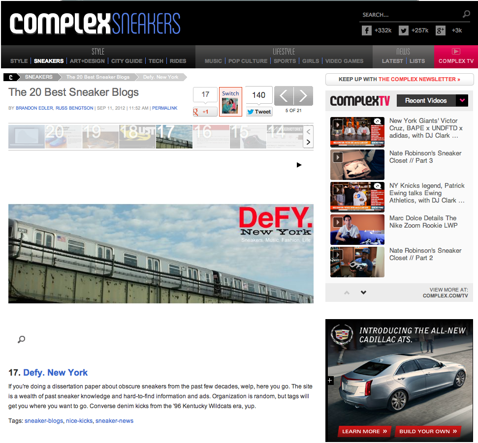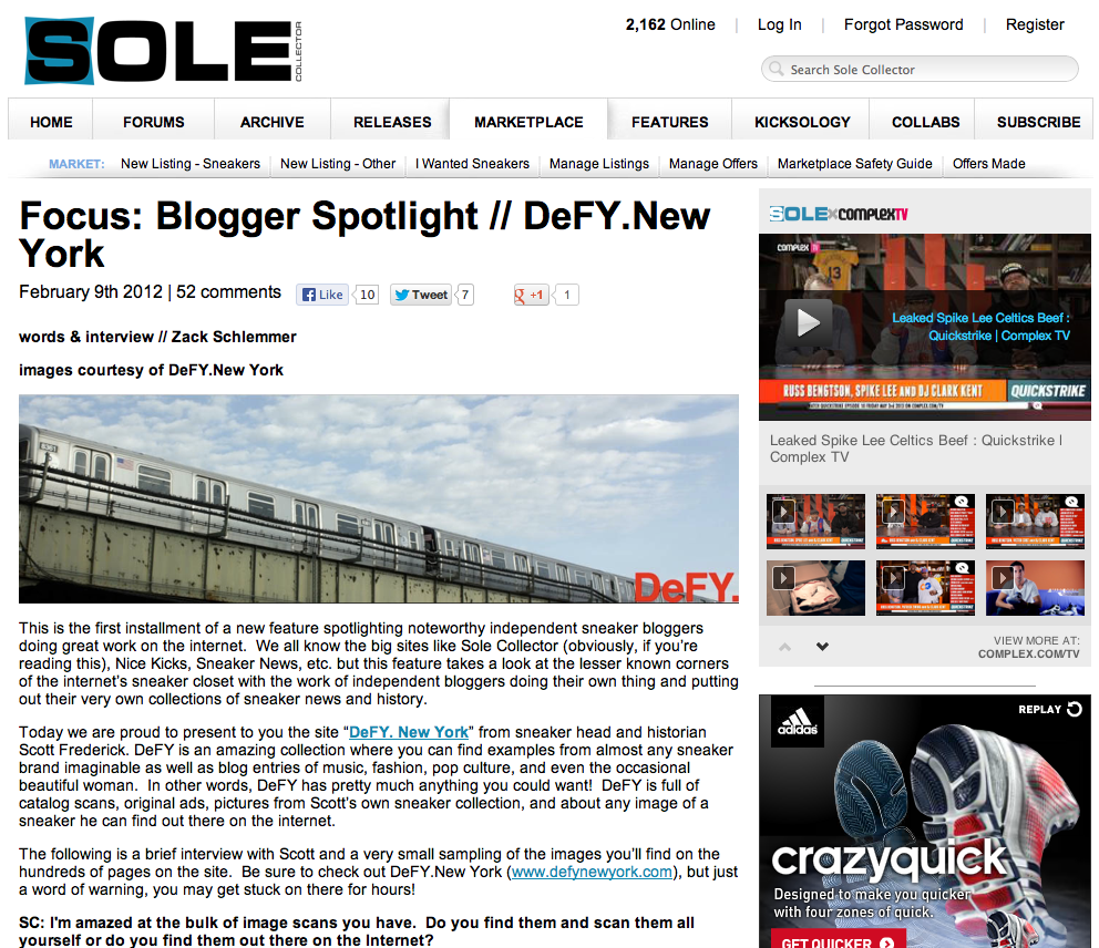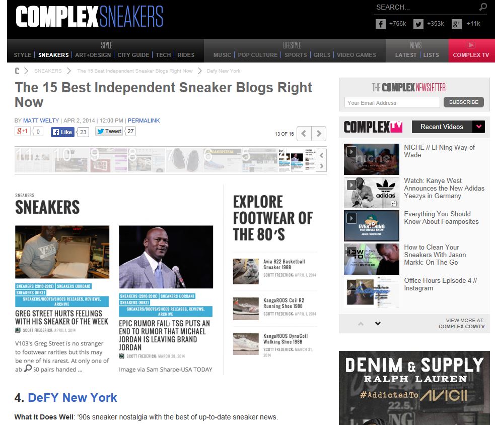 While I never started the site with the idea that I would be recognized for it in the media, being recognized for the time put in feels good especially when its a passion project that reflects me and my upbringing. Of course the first site to ever really acknowledge DeFY. New York was the OSD Crew headed by Sean Williams and Dee Wells, then came my first interview with Zack Schlemmer -when he was at Sole Collector –