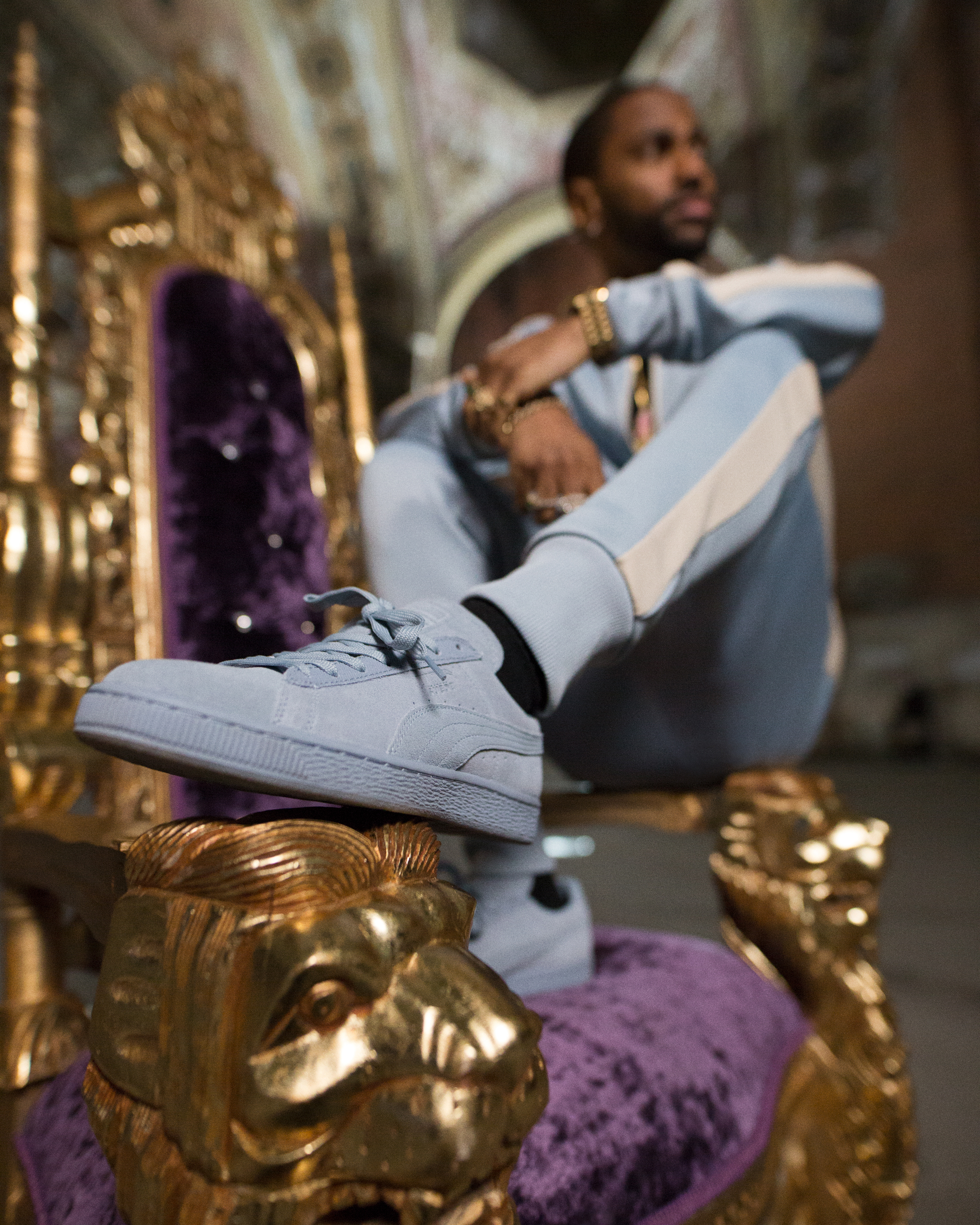 Featured in the latest campaign, Big Sean is seen on the throne wearing the new Suede Classic Tonal. A pack featuring three subdued and natural colorways that are super clean, big Sean pairs the Suede Classic Tonal with a matching baby blue T7 Full Zip Bomber Jacket. I don’t care if you are an adidas or Nike fan boy there is no denying this fits legginess. Grab each at PUMA.com and Champs Sports for $70.00.