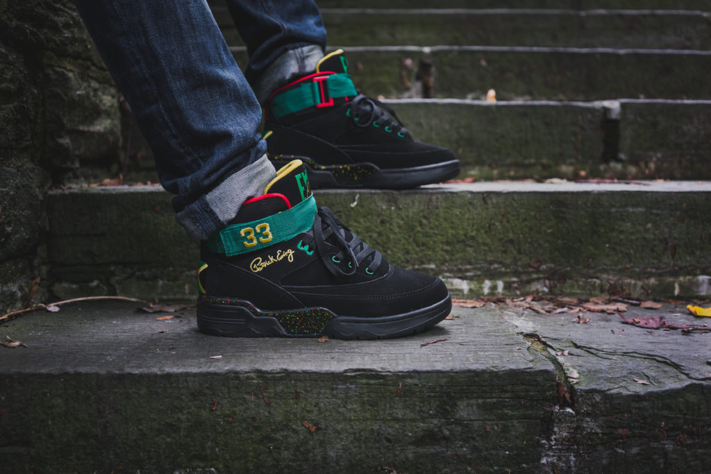 The Ewing Sept Retro Collection is now available in stores and online tomorrow with an MSRP of $120 for the 33 HI and $110 for the MID. This latest drop consists of 2 33 HIs in opposite “Yin/Yang” Black Patent and White color ways and a 33 MID in Black/Jamaica edition with the national flag on the back and paying homage to Patrick’s birthplace of Kingston, Jamaica. Retailers will carry sizes 5-13 and larger sizes will be available on Ewingathletics.com.
