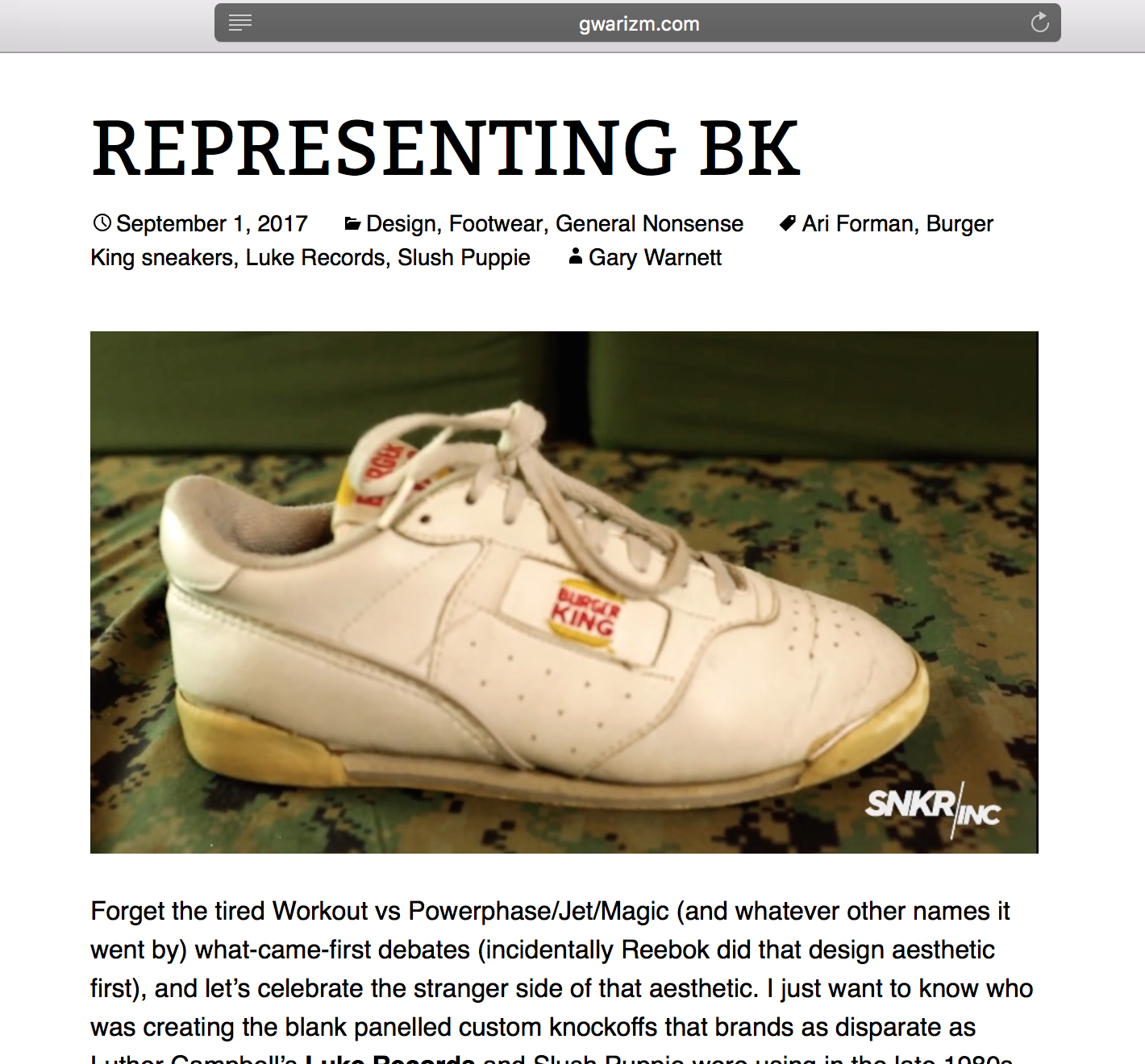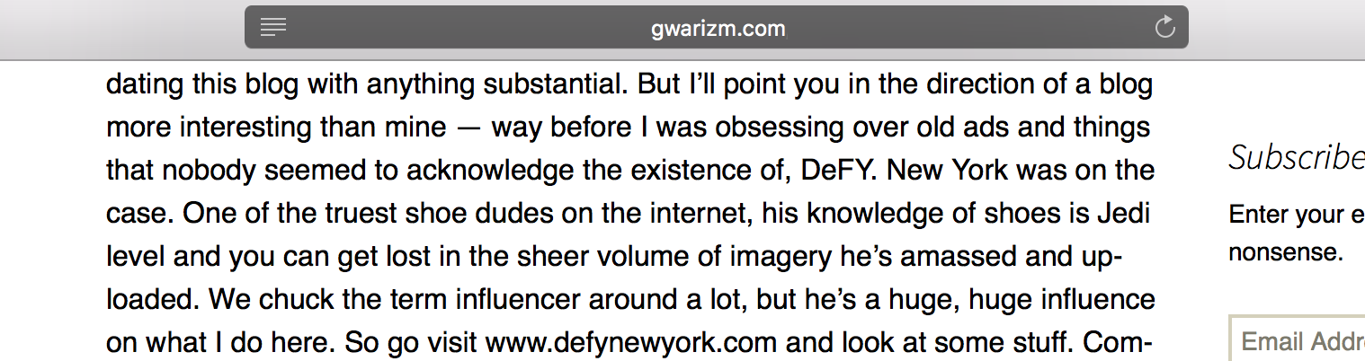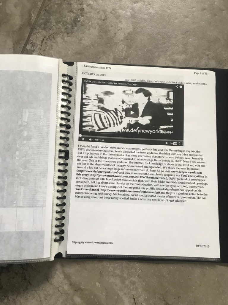 When the time came, Crooked Tongues became one of the few forums- where I was comfortable enough to share photo’s and info from my own personal blog – without the fear of being marked off as spam (thanks sneakers.fr). Annoying tags and all Gary embraced me there -and unbeknownst to me – would continue to support DeFY. New York. It wasn’t until one day in 2013 when I noticed a backlink coming from Gwarizm – Gary’s legendary personal blog that I realized this. I had recently uploaded a bunch of Footlocker in store promotional videos from 1987 and Gary did a quick feature which was cool, but going through the write up I was taken back. In addition to shouting out my site and encouraging everyone to go check it out he wrote: