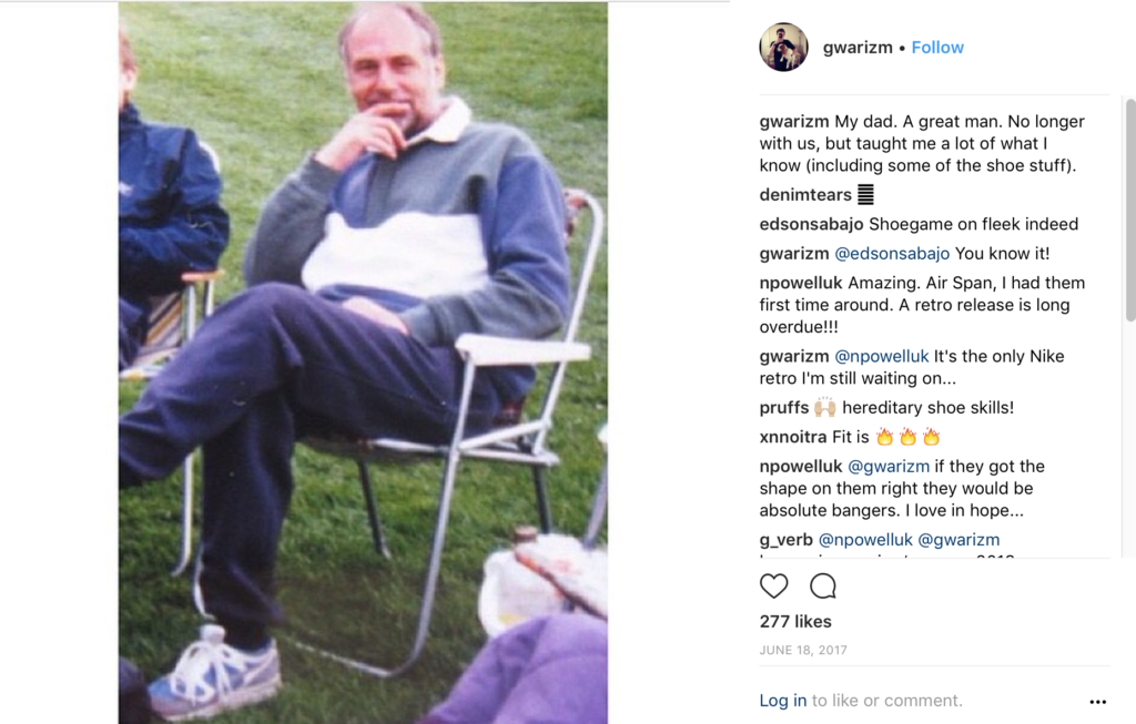 Its of Gary’s father wearing the one of Nike’s best silhouettes in arguably one of the best color way’s for the model. Â If you notice in the comments of his IG he states it was the only Nike shoe he was waiting on and what better way to immortalize Gary than on this model of the Span and in this colorway.