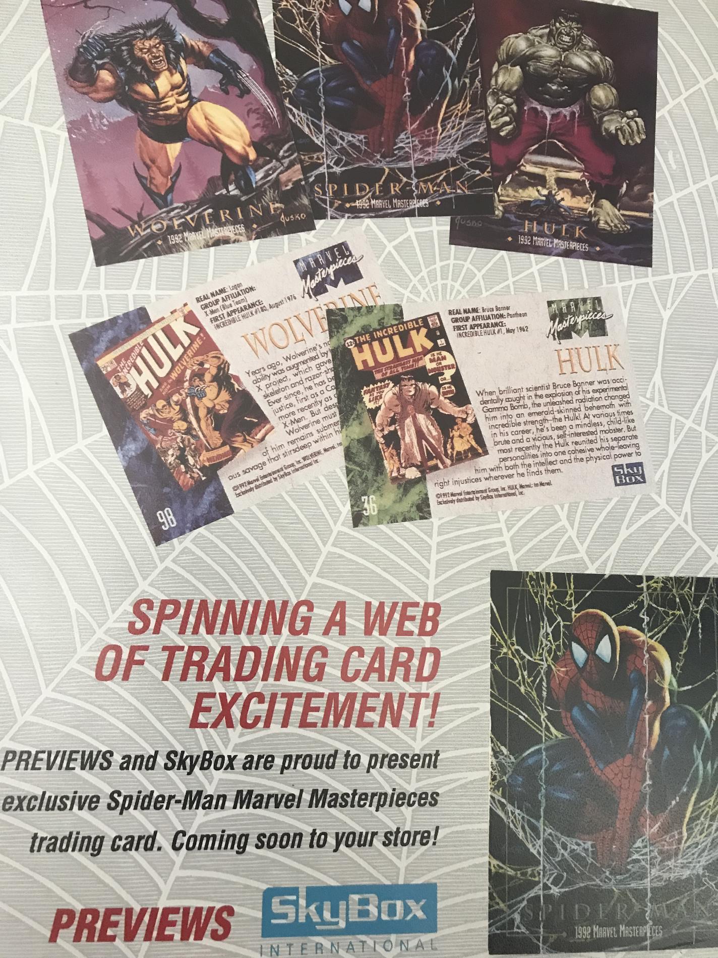 These literal masterpieces showed up via a dealer sheet with one card glued to it declaring “coming to your store soon!” -these dealer sheets have gone on to become very rare and thus highly collectible but ultimately a piece of comic history.