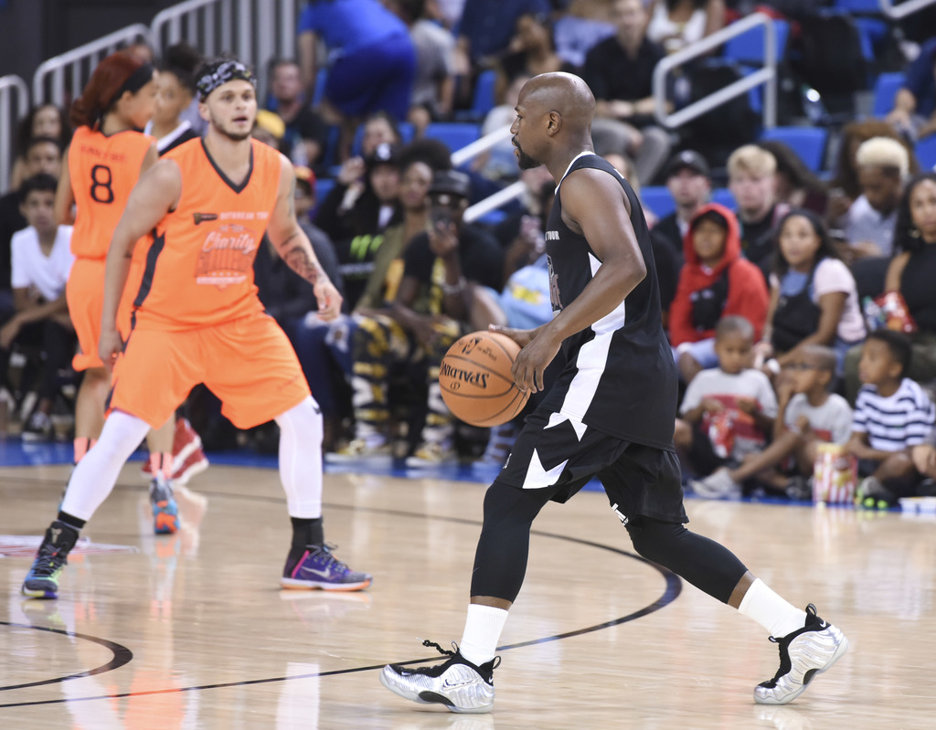 In addition to basketball skills footwear was also on display as Mayweather broke out the Nike Air “Silver Surfer” Foamposite Pro