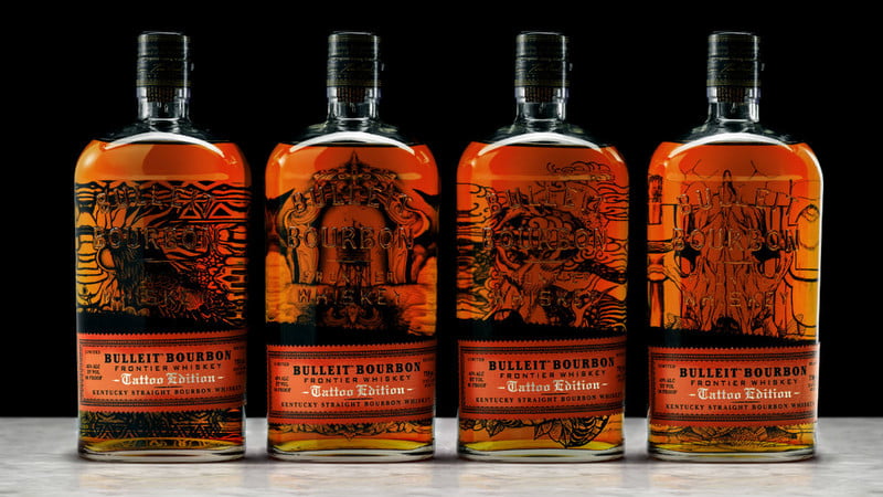 This month Bulleit Frontier works has featured a limited collection of tattooed Bulleit Burbon Bottles created by leading tattoo artists in New York, LA, Portland and Austin.