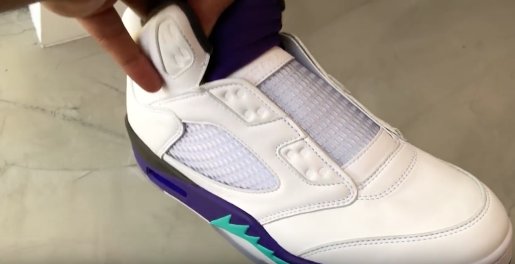 On to 2018. Â FINALLY, for the first time ever Nike Air returns to the Jordan V grape and teal as well as with premium leather. Â Boom! Â It appeared that finally after 28 years of waiting we would get our hands on this shoe in all its OG glory that was until it was announced there would be no laces, no option to lace and thus no lace locks -an ode to Will Smith wearing these with no laces once or twice on the show and in press photos for the Fresh Prince of Bel Air.