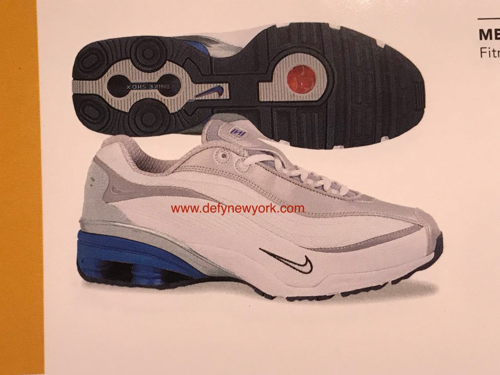 The upper of this sleek looking $100 Shox walking shoe was pretty nice. Designed for fitness walkers this shoe featured a molded lightweight synthetic leather and mesh, shox tech with a walking specific curved heel radius, Phylon forefoot frame that holds inboard/outboard PU sicklier with forefoot air unit and an outsole with combination solid and durable rubber compound with visible air window in the forefoot. Overall nice looking 2003 offering from Nike.