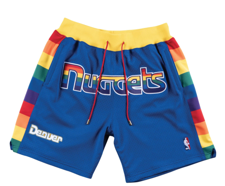 Mitchell & Ness has officially released all-new shorts with designer, Don C. These new options -a continuation of the Just Don collection which has seen success with his other shorts and sublimated jerseys- include the Denver Nuggets shorts that feature rainbow detailing across the front, as well as down the left and right side making