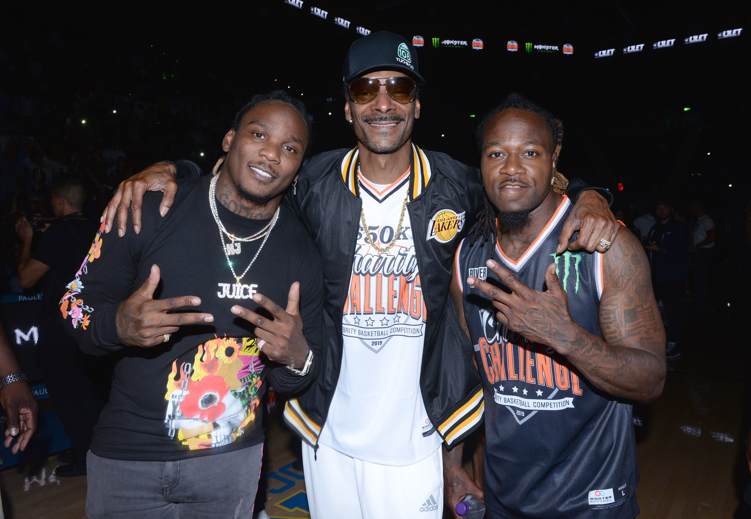 WESTWOOD, CALIFORNIA – JULY 08: (L-R) Chris Johnson, Snoop Dogg and Adam “Pacman” Jones attend the Monster Energy $50K Charity Challenge Celebrity Basketball Game at UCLA’s Pauley Pavilion on July 08, 2019 in Westwood, California. (Photo by Vivien Killilea/Getty Images for Idol Roc )