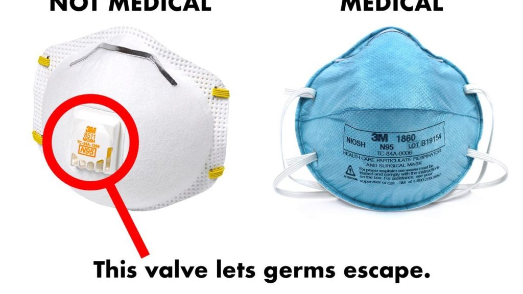 Even worse? According to the Mayoclinic Masks like the N95 mask (with a valve to make breathing easer) expels unfiltered air which means while the person wearing the mask is mostly protected, should they have COVID 19 they will pass the virus around unfiltered as if they aren’t even wearing a mask.