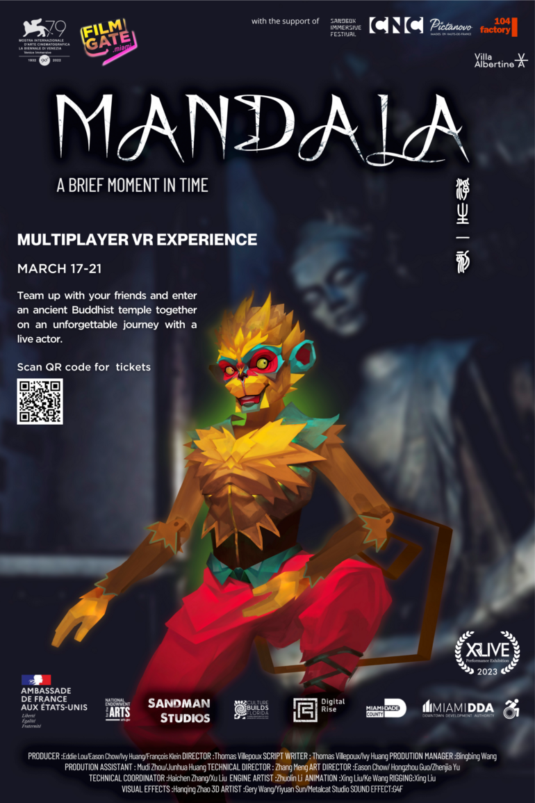 Hosted by FilmGate space in Downtown Miami at their Downtown Media Center, Mandala: A Brief Moment in Time is an immersive theater experience for 3-6 people that uses group discussions to tell different stories from Buddhism around the themes of suffering, happiness, hungry ghosts, & living the good life. There’s a moral dilemma at the end of the experience that requires the participants to come to some level of consensus. Consequently, there are a number of different endings based on what the group decides.